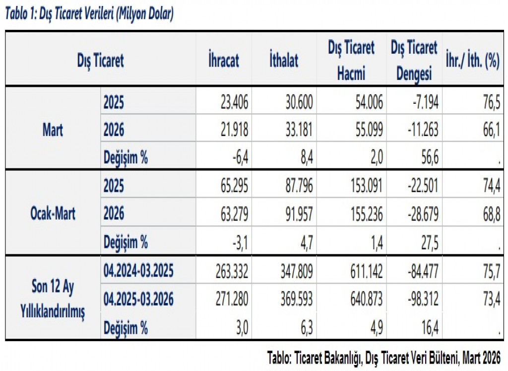 Bakanlığı’nın açıkladığı verilere göre mart ayında Türkiye’nin dış ticaret