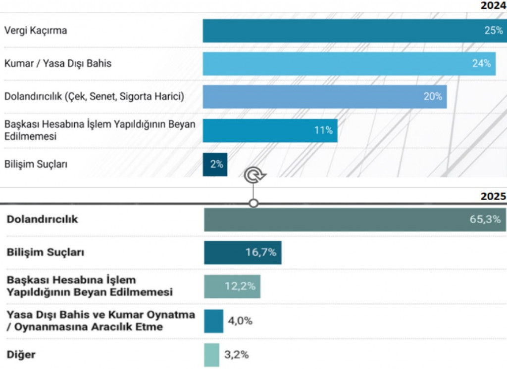 2024 yılına göre %65,3 artması hakkında ise, “Dolandırıcılık suçlarına